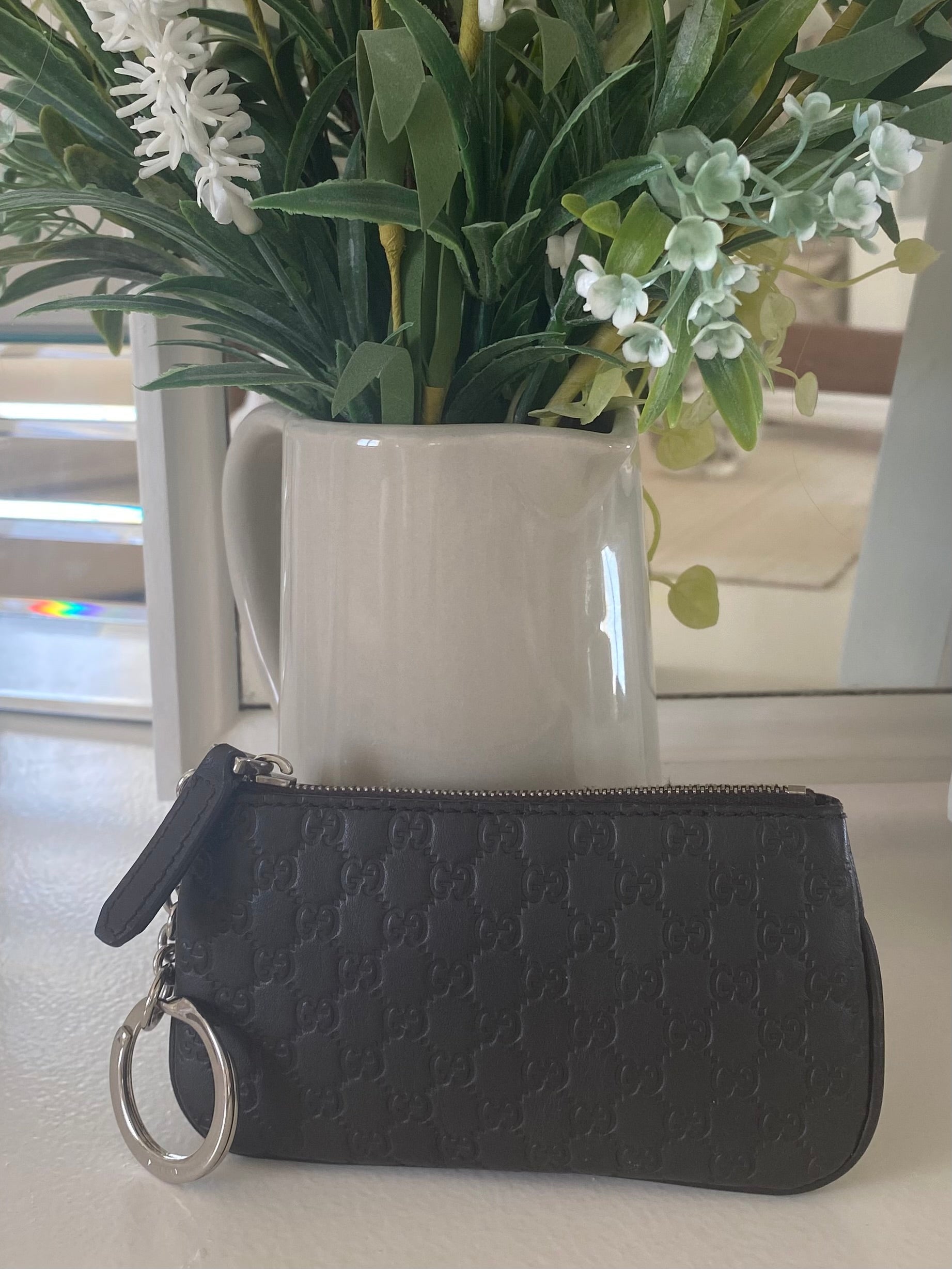 Take your organization and style game to the next level with the sleek Gucci Micro Black Leather Key Pouch. Designed to keep your credit cards and keys safe, this accessory is both functional and fashionable. With its high-quality leather material and iconic Gucci design, you'll make a bold statement and elevate any outfit. Perfect for daily use or special occasions, this key pouch is a must-have accessory for any fashion-forward individual.