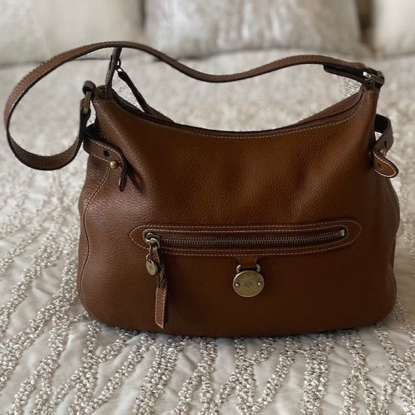 The Mulberry Somerset Hobo. Crafted from soft grained oak leather, this bag features a cotton interior lining and zipped pocket for added convenience. The exterior leather is in very condition, promising plenty of use. Whether you're running errands or heading to the office, this casual bag is the perfect choice. Condition is good with signs of use to the interior lining & hardware. The exterior leather is in very good condition.